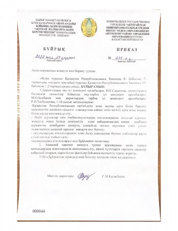 2015 жылдың 15 наурыз күні тамақтандыру сапасына мониторинг жасау үшін жүргізілген тексеруді қорытындылау комиссия шешімімен.