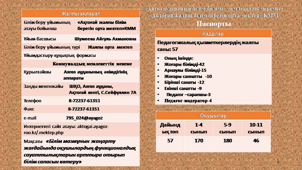 Абай облысы білім басқармасының Аягөз ауданы білім бөлімінің «Ақтоғай жалпы орта білім беретін мектебі»