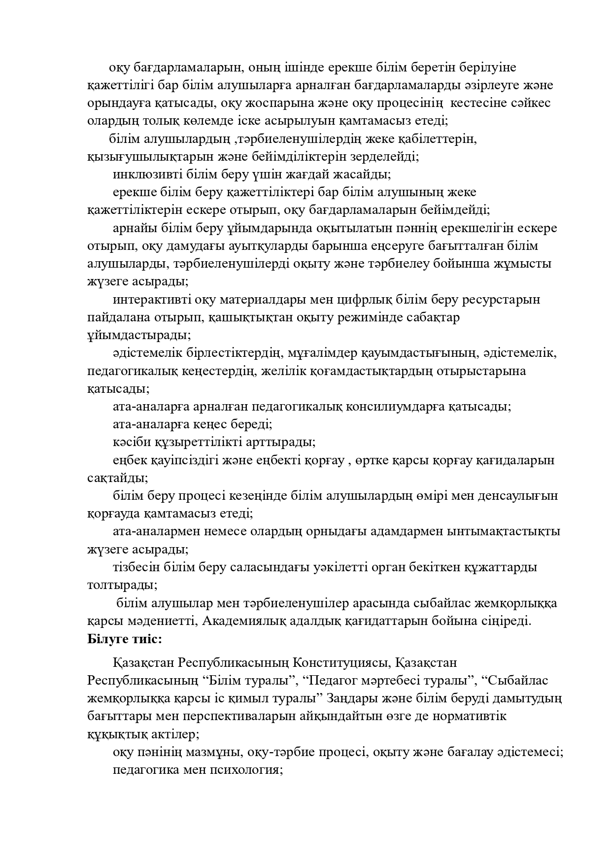 2.1 Жұмыс- оқу жоспары, сабақ кестесі